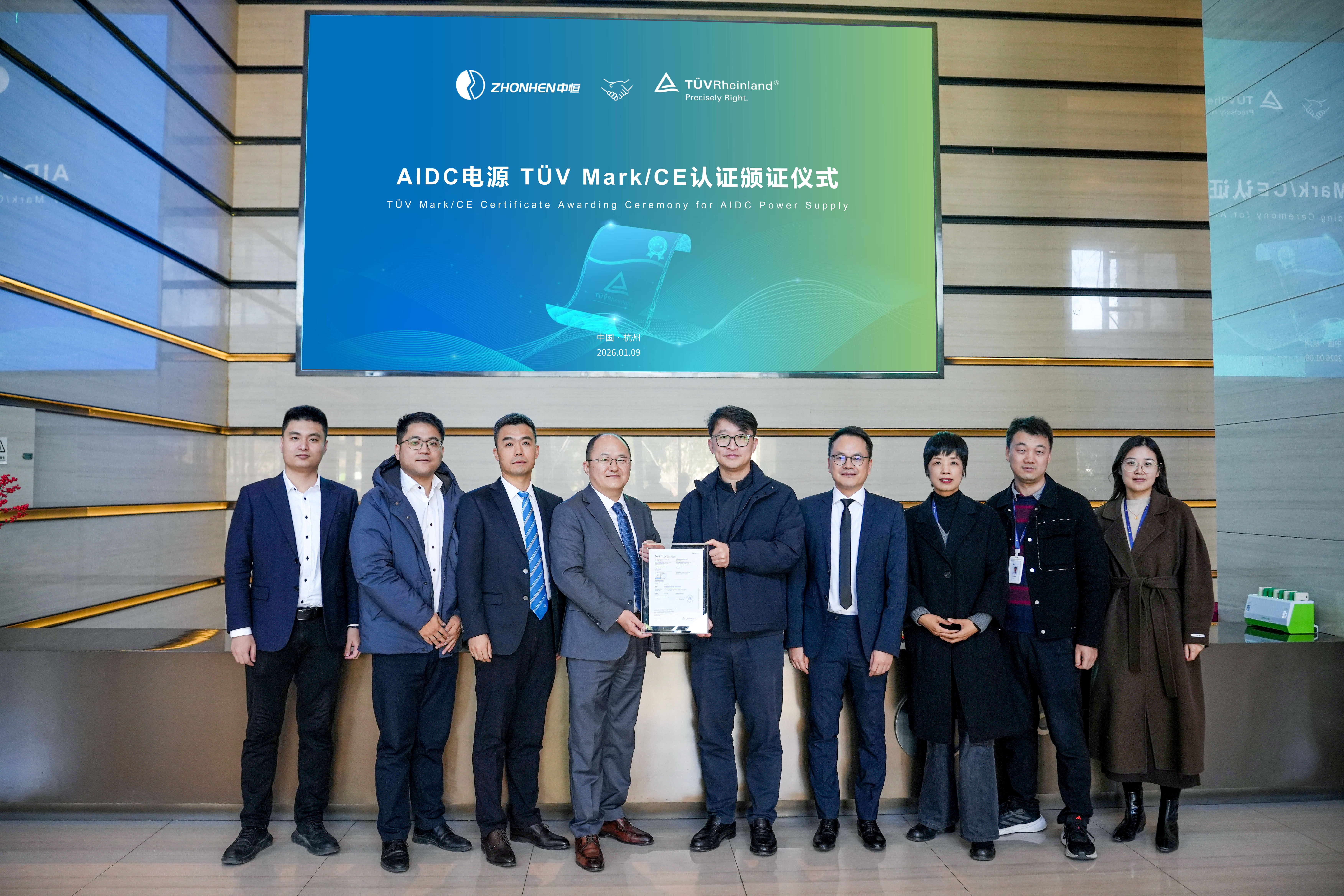 日前,德国莱茵TÜV大中华区(以下简称“TÜV莱茵”)向杭州中恒电气股份有限公司(以下简称“中恒电气”)正式颁发大中华区首张AIDC电源产品TÜV Bauart Mark/CE证书。